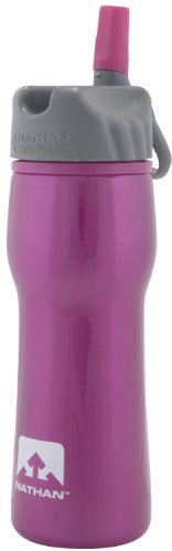 The Steel Flip Straw allow you to access your fluids without unscrewing the cap or tilting the bottle. The patent-pending lid from Nathan finger loop QuickClip attaches the bottle to a belt, shoulder strap, or pack with ease. The wide-mouth, screw-top lid is easy to grip and large enough for easy refilling and cleaning.