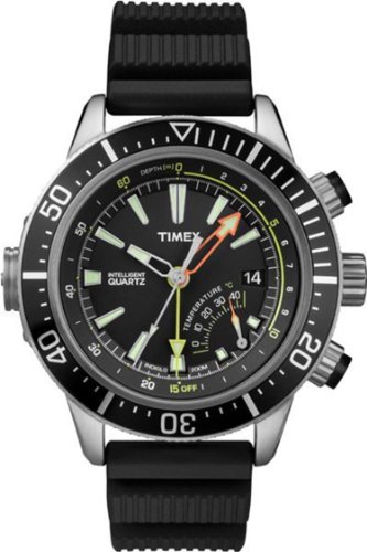 Upgrade to style and sophistication with this elegant Timex watch. Boasting a stunning 46mm stainless steel case matched with a secure rubber band, this timepiece makes an ideal accessory for any affair. The black dial sits under a mineral crystal, which combines a stylish look and an easy-to-read display. The sleek, subtle design instills this watch with an unmistakable sense of luxury that cannot be matched. Additional features include water resistance up to 200 meters, date, and measures seconds.